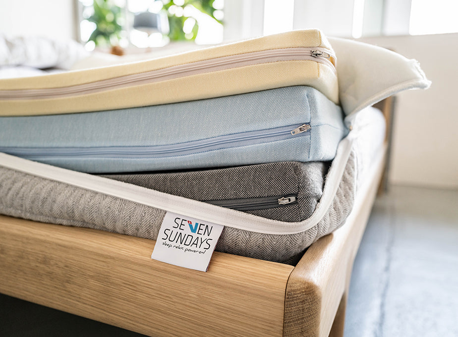 Mit SEVEN SUNDAYS kannst Du nicht nur Deinen Schlaf extrem optimieren. Du kannst auch selbst bestimmen, wie Du liegen möchtest. Entscheide Dich zwischen der anschmiegsamen Memory-Schicht aus einem High-Performance Visco Schaum mit ausgeprägtem Memory-Effekt und der federnden Latex-Schicht aus 100% Naturlatex mit perfekter Anpassungsfähigkeit.